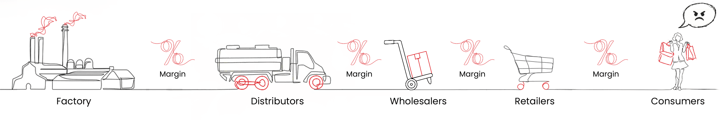 The Product is reached to consumers through third parties to be finally bought by the consumer.