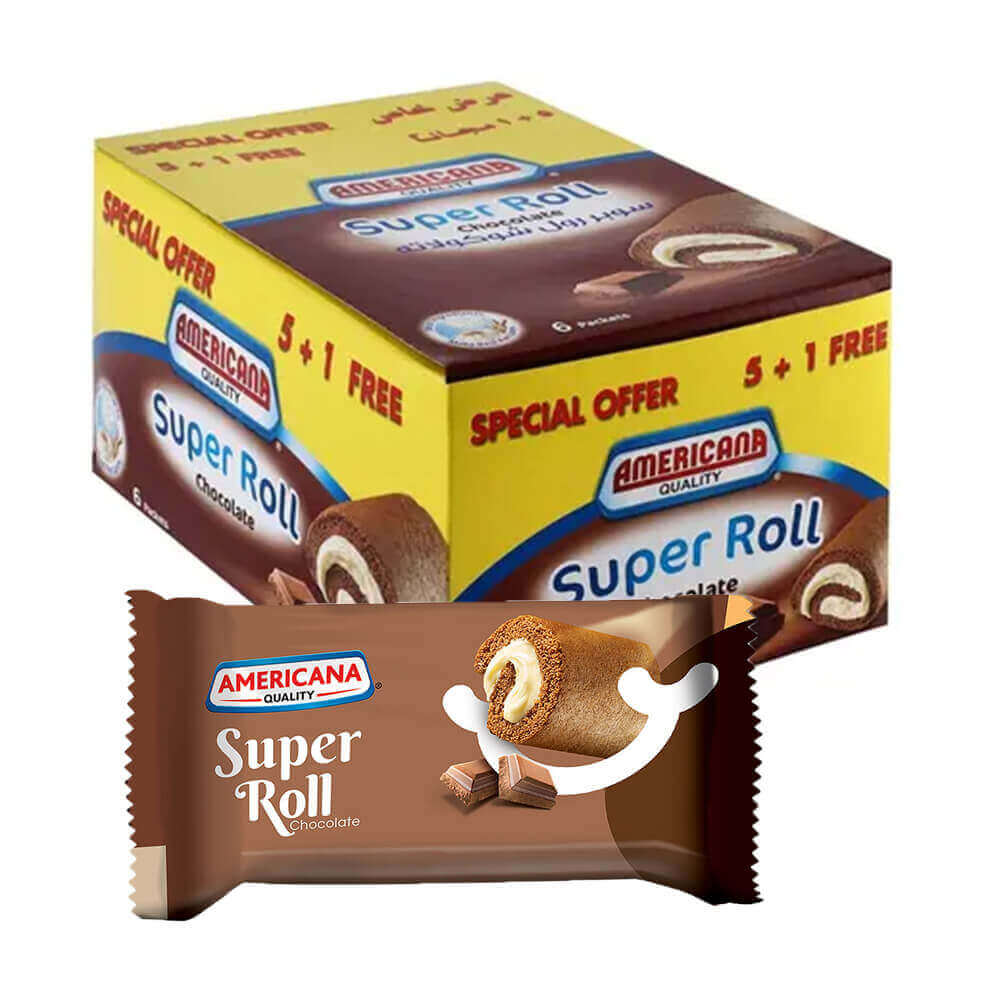 استمتع بطعم الشوكولاتة الغني مع سوبر رول أمريكانا شوكولاتة، كيك طري محشي بطبقة كريمية لذيذة.