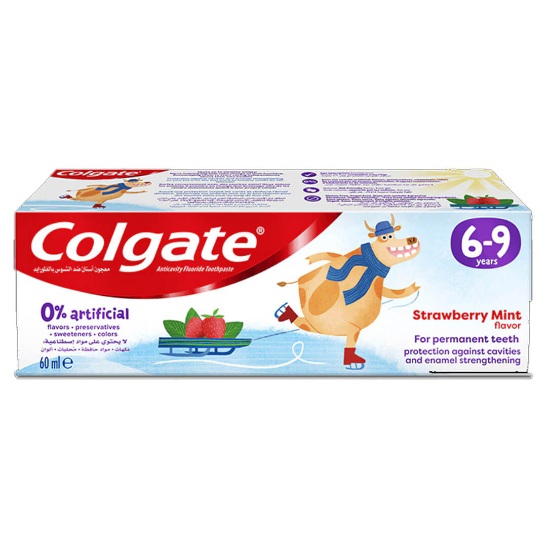 كولجيت معجون أسنان للأطفال طبيعي بنكهة الفراولة والنعناع من 6-9 سنوات خالي من الفلورايد 60ml