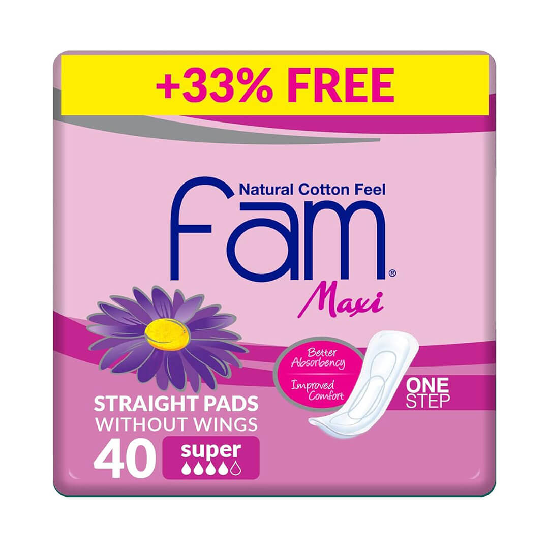 Fam Classic with Wings Natural Cotton Feel Maxi Thick Super Sanitary 30 pads