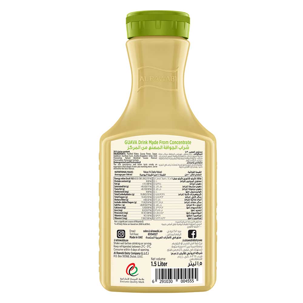 Discover the delightful Al Rawabi Guava Juice 1.5Ltr at Martoo Online. Immerse yourself in the naturally sweet and tropical taste of guavas for a refreshing and exotic beverage.