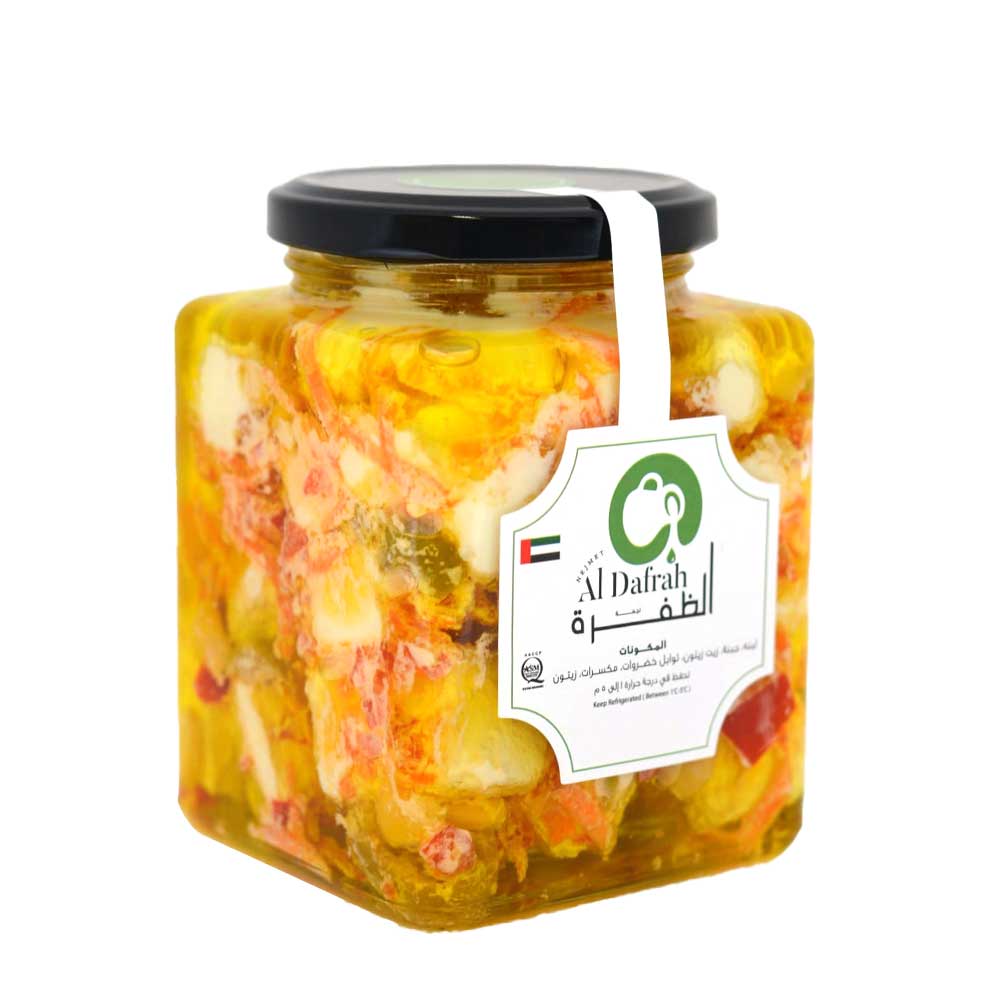 Experience the ideal blend of taste and nutrition with Al Dafrah Labneh Mix Makdous 250g. This delectable combination features creamy labneh, flavorful makdous, premium olive oil, and authentic spices. Discover the ultimate culinary harmony, exclusively on Martoo online.